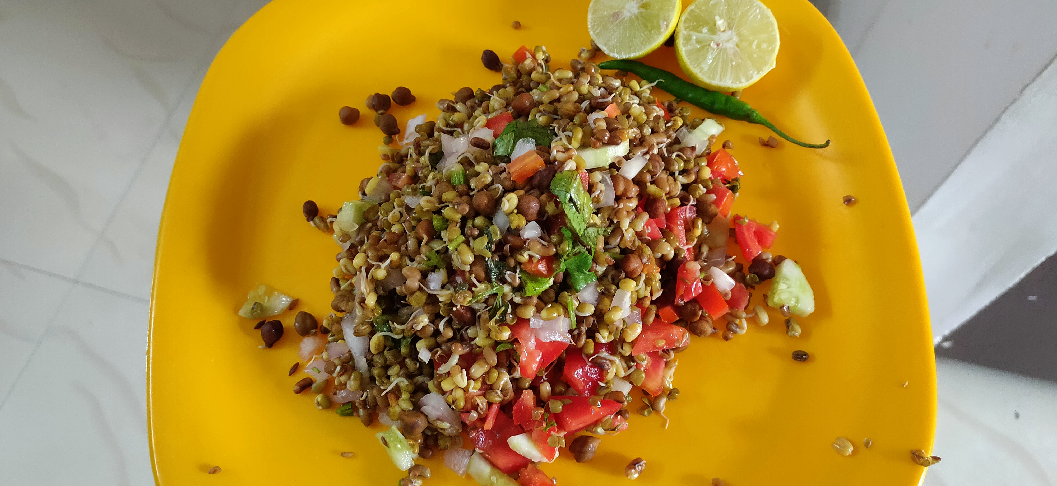 Sprouts are healthy and tasty and perfect breakfast. It is full of nutrition. There is goodness of sprouts and vegetables .