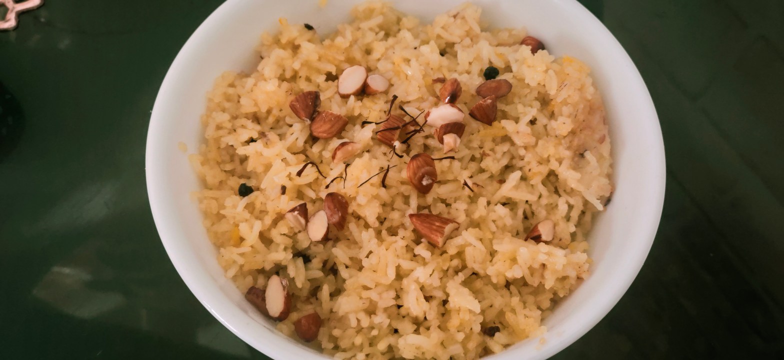 Kesariya bhaat/meethe chawal/sweet yellow rice